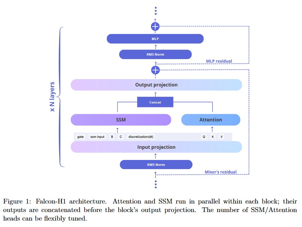 How does it solve the problem? The team behind Falcon-H1 took a bold hybrid approach. Instead of using a pure Transformer like most LLMs, Falcon-H1 combines Transformer-based self-attention with State Space Model (SSM) components in a parallel “dual head” architecture. SSMs (inspired by models like S4) are known for handling long sequences with linear computational complexity and providing superior long-term memory. By integrating SSM layers alongside traditional attention, Falcon-H1 leverages the strengths of both: attention for complex short-term dependencies and SSM for efficient long-range processing. They didn’t stop at architecture – the designers revisited everything from model depth to training data strategy to optimize for efficiency. Falcon-H1 comes in a spectrum of sizes (base and instruction-tuned variants at 0.5B, 1.5B, 3B, 7B, and 34B parameters, plus a special “1.5B-deep” version). Notably, all models support a context window up to 256k tokens – orders of magnitude beyond typical limits – enabled by the SSM component managing long-term memory. They also released many models in quantized form (int8) for easy deployment, totaling over 30 checkpoints on HuggingFace. The entire suite is open-source under a permissive license, meaning anyone can use or fine-tune them without heavy restrictions.