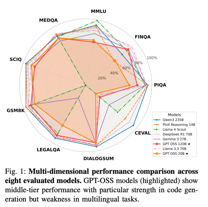 How does it solve the problem? Researchers ran comprehensive benchmarks comparing GPT-OSS (120B and 20B versions) against 6 contemporary models across general knowledge, math, code, and multilingual tasks. They used statistical significance testing to ensure results weren't just noise.
