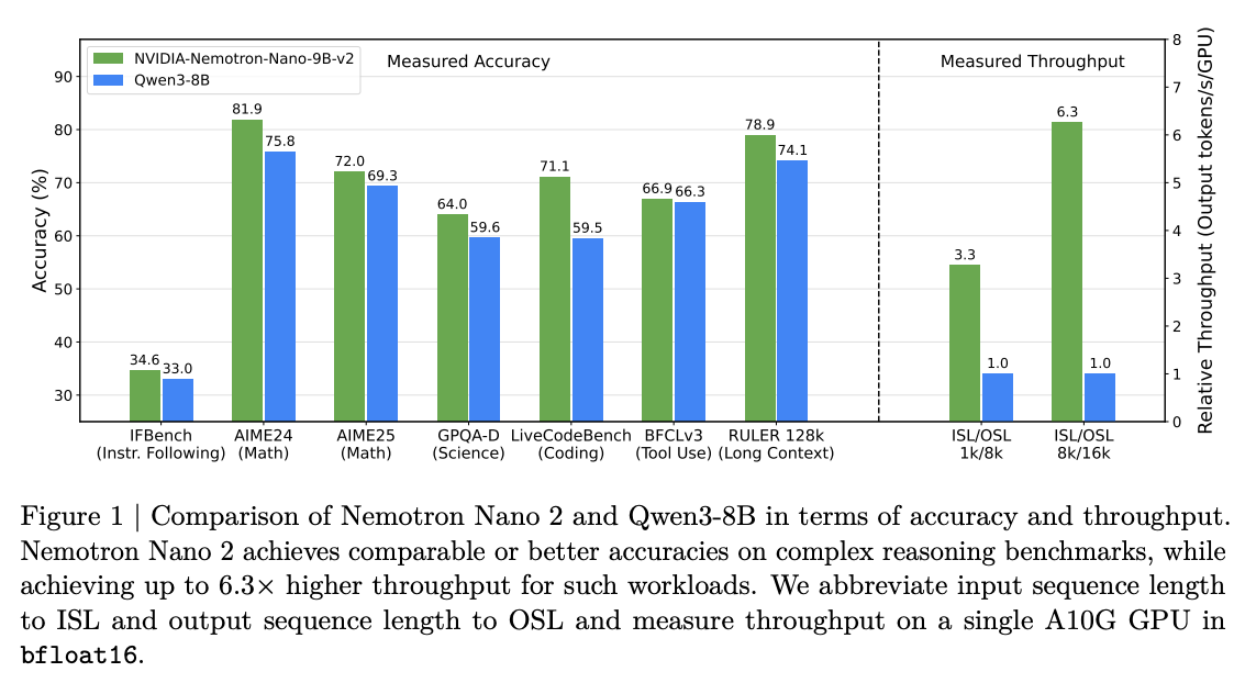 What are the key findings? Up to 6x higher throughput than comparable models for generation-heavy tasks. A 9B parameter model that runs 128K context on a single A10G GPU (just 22GB memory). The model was trained on 20 trillion tokens, then compressed from 12B to 9B parameters while maintaining performance.