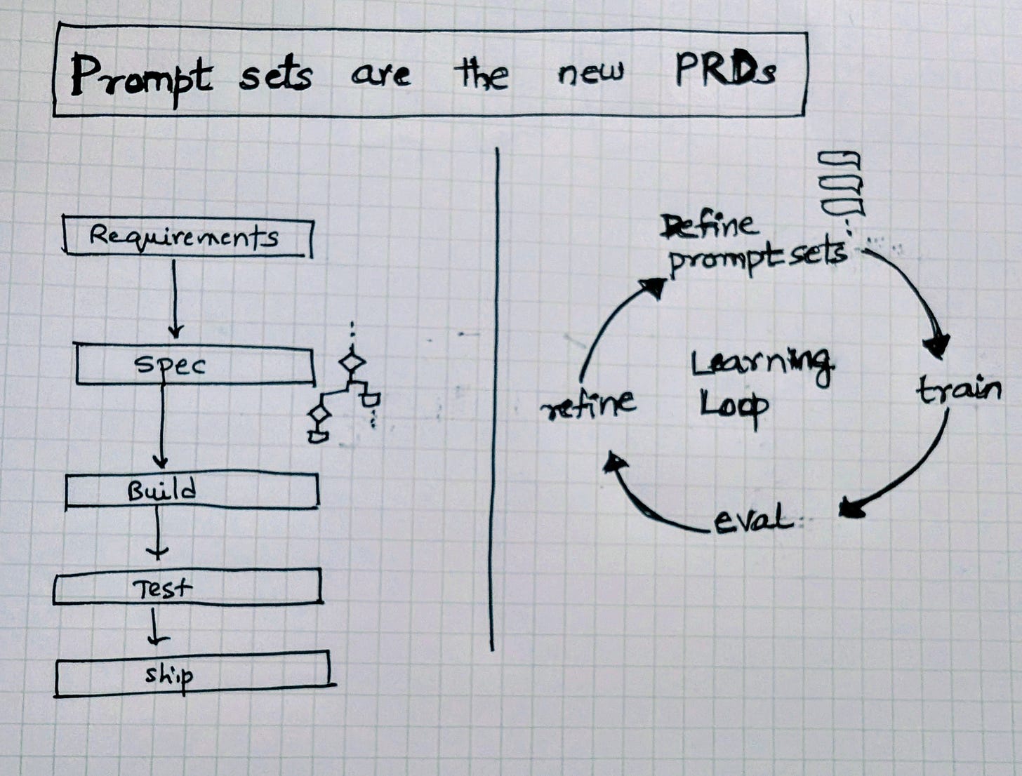 Traditional PRDs were written for programmers. They locked requirements down in advance, then handed them off to be built. Prompt sets work differently. They are living artifacts: part specification, part training data.