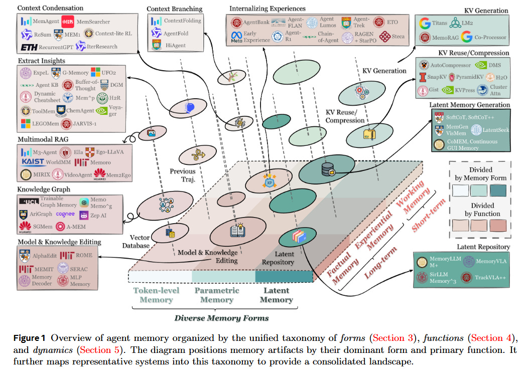 Memory as a First-Class Citizen: A comprehensive survey this week formalized agent memory as a core capability, cutting through fragmented terms and approaches. It proposes a unified taxonomy of memory forms (token-level logs vs. parametric weights vs. latent vectors) and functions (factual knowledge vs. experiential learning vs. working scratchpad). This clarity matters because long-term memory is emerging as essential for autonomous agents, yet inconsistent terminology and design hinder progress. By mapping out how agents form, use, and update memories, the survey lays groundwork for agents that remember and learn over time, with future research charted in memory automation, integration with reinforcement learning, multimodal memory, and trustworthy memory handling.