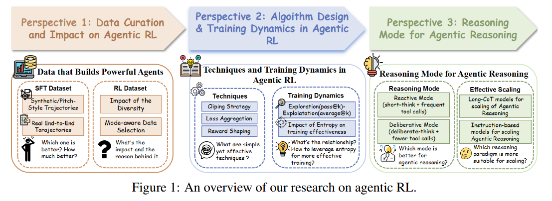 Best Practices for Agentic RL (paper): In “Demystifying RL in Agentic Reasoning,” Yu et al. systematically evaluate how to get the most out of RL when training tool-using LLM agents. They identify a few simple but powerful practices: (i) Use real, end-to-end tool-use trajectories rather than stitched-together snippets - this yields a much stronger initialization for supervised fine-tuning and ensures diverse, model-aware experience data. High-diversity datasets prevent the agent from overfitting and help sustain exploration. (ii) Employ exploration-friendly techniques - for example, allowing higher clipping thresholds, shaping rewards over longer horizons, and maintaining sufficient policy entropy - to encourage the agent to try novel solutions, greatly boosting RL training efficiency. (iii) Favor a deliberative reasoning strategy with fewer, more targeted tool calls over very frequent calls or overly verbose self-dialogues. In other words, teaching the agent to think a bit more before acting leads to better tool efficiency and final accuracy. Using these tips, they achieve state-of-the-art results on challenging benchmarks with smaller LLMs, even getting a 4B model to outperform a 32B model on agentic reasoning tasks. They also release a high-quality supervised and RL dataset of agent trajectories to help others replicate these gains.