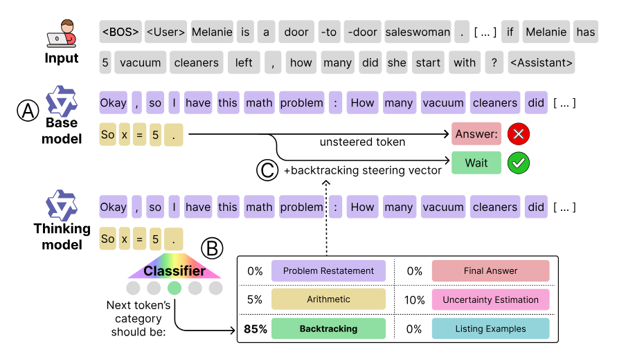 Base Models Know How to Reason, Thinking Models Learn When (Venhoff et al., 2025) - Do larger “thinking” models actually acquire new reasoning skills, or just learn to use skills their base model already had? This provocative work finds evidence for the latter. So-called “thinking models” (like those fine-tuned with chain-of-thought or other reasoning prompts) consistently outperform their base LLMs on tasks like math word problems. But the authors show you can close **≈91% of that gap ** by non-training means: they create a hybrid setup that takes a base model and “steers” its hidden activations on-the-fly using cues from a thinking model. Specifically, they identified certain internal neurons or directions associated with reasoning steps (via an unsupervised method to find interpretable reasoning behaviors). At inference time, nudging the base model along those directions for only ~12% of the tokens is enough to make it solve problems almost as well as the fully fine-tuned model - all without updating any weights. This strongly suggests the base pre-trained model already contained the requisite reasoning capability; what the thinking-model fine-tuning did was mainly teach the model when to deploy those capabilities. In other words, during pre-training the model learned “how to reason” in principle, and during specialized fine-tuning it learned “when to switch into reasoning mode”. This reframes our understanding of chain-of-thought finetuning: it may not be adding new reasoning circuits so much as scheduling the existing ones. The paper’s results also introduce a practical method: by activating latent reasoning at the right times, a base GPT-style model can get close to advanced performance with far less cost. It’s an exciting validation that even very large LLMs still have untapped reasoning potential that can be elicited by careful prodding, rather than always needing scale or heavy training.