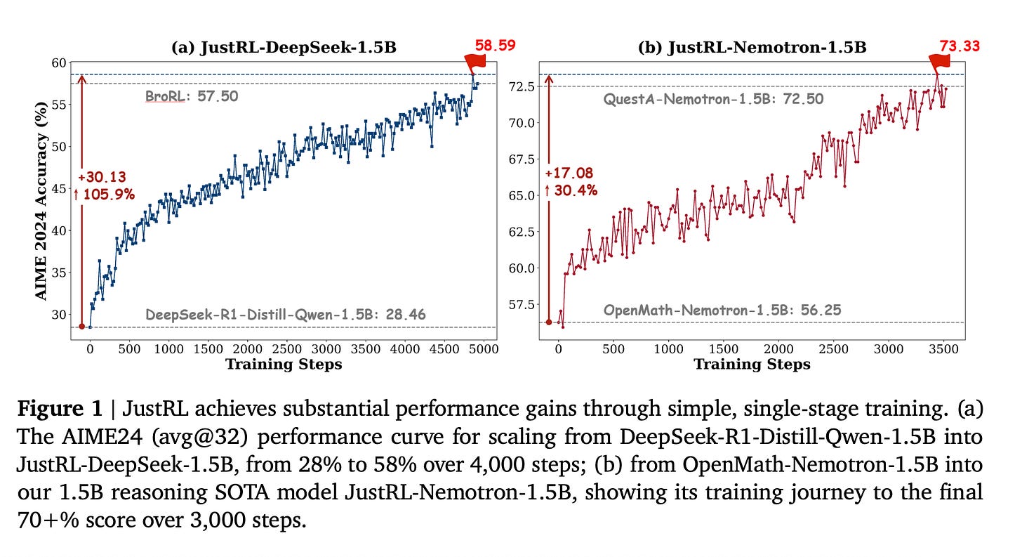 JustRL: Scaling a 1.5B LLM with a Simple RL Recipe (paper)