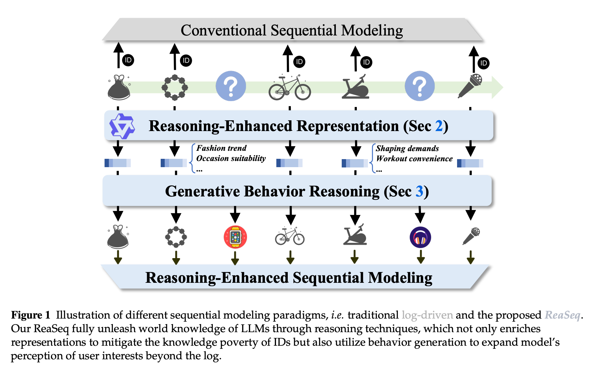 E-commerce recommendation systems usually rely on user interaction history, but they can be “blind” to unobserved interests and lack background knowledge about items. ReaSeq, developed by Alibaba’s TaoRank team, injects LLM-based reasoning into sequential recommender models to address these issues. The system uses an LLM to enrich item representations with world knowledge and to infer potential user interests that haven’t been directly seen. Deployed on Taobao (a major online shopping platform), ReaSeq delivered notable gains: over +6% improvement in click-through rate and page views, and more than +2.5% increase in gross merchandise volume (sales) during live A/B tests. These are significant business metrics, highlighting that incorporating reasoning and external knowledge can tangibly improve recommender performance at scale.