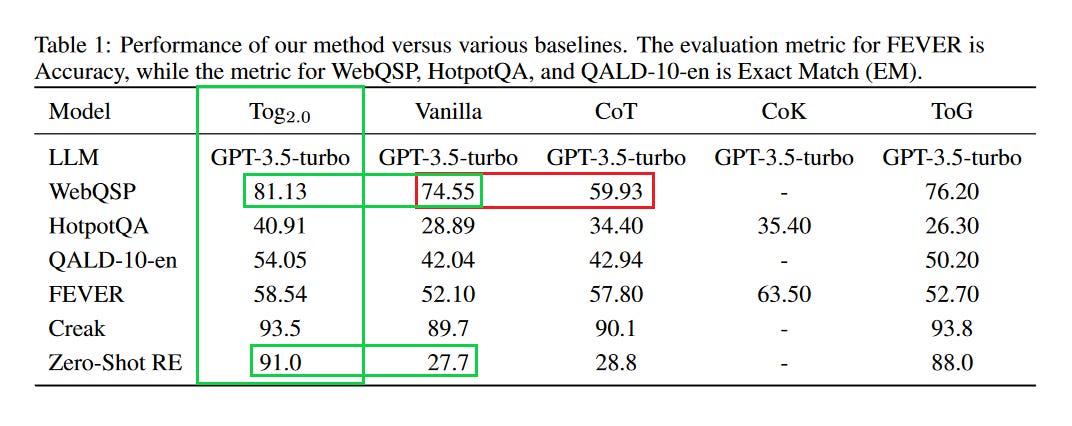 What's next? The success of ToG2.0 highlights the potential of hybrid structured knowledge systems in advancing LLM reasoning capabilities. By combining the strengths of LLMs and structured knowledge bases, such as KGs, we can develop models that exhibit more human-like performance in complex reasoning tasks. Future research could explore the integration of other types of structured knowledge, such as ontologies or rule-based systems, to further enhance the reasoning abilities of LLMs. Additionally, the development of more efficient retrieval mechanisms and the incorporation of real-time updates to the knowledge base could make these hybrid systems more practical for real-world applications.