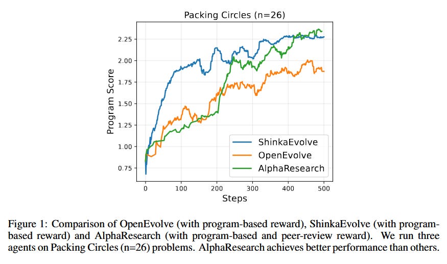 Human-competitive results: Remarkably, the AlphaResearch agent managed to beat human researchers in 2 out of 8 problems on this benchmark. In particular, for a difficult circle packing problem, the algorithm devised by AlphaResearch achieved the best-known performance to date, surpassing all prior human-devised solutions and even outperforming a strong automated baseline from recent work (AlphaEvolve). These successes demonstrate the potential of LLMs to not just solve known problems but actually propose new algorithms. The authors also analyze the cases where the agent fell short (the other 6 tasks), identifying current limitations and guiding future improvements in AI-driven scientific discovery.