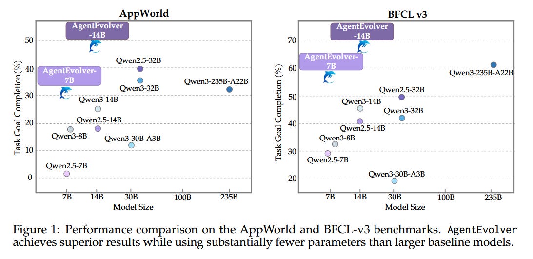 Improved efficiency: By integrating these mechanisms, AgentEvolver enables scalable, cost-effective, continual improvement of the agent’s capabilities. Preliminary experiments show it achieves more efficient exploration, better sample utilization, and faster adaptation than traditional RL-based baselines, demonstrating the benefits of the self-evolving approach.